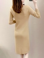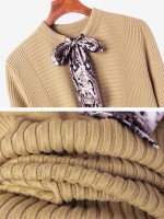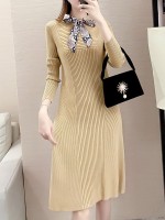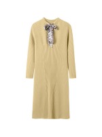 Yellow Ribbed Knitted Dress with Scarf Decoration
